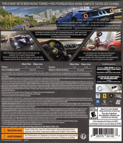 Experience unrelenting action in the most beautiful and comprehensive racing game of this generation. Collect, customize, and race over 450 ForzavistaTM cars*, all with working cockpits, opening doors and full damage. Compete in epic 24-player races across 26 world-famous locales. Master wet weather and night racing on your road to victory.