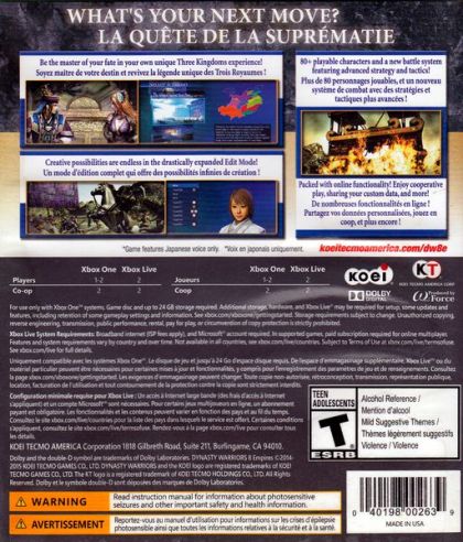 DYNASTY WARRIORS 8 Empires focuses deeply on the chaotic lives of the warriors as their fateful decisions affect the rise and fall of the nations they bravely fight for. Players can select from 83 unique characters, or create their own original character with a plentitude of options through the edit function. The visual customization goes further with the newly implemented ability to customize their horses, banners and "normal" officers.