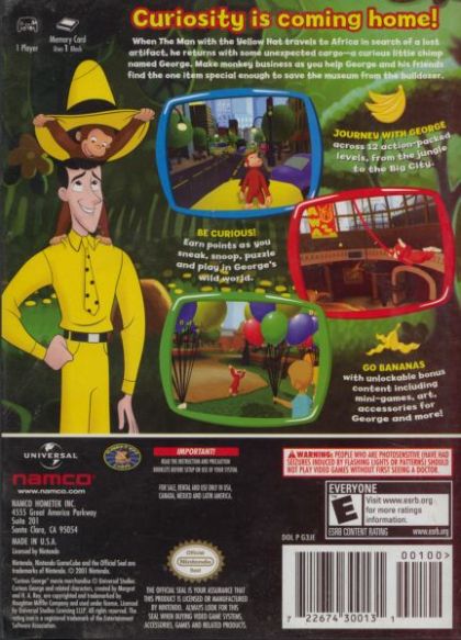 The story begins as The Man With the Yellow Hat travels to the jungle in search of an artifact exotic enough to save the museum where he works. Naturally, George follows him back to the big city and embarks on a series of mis-adventures. Players control George as he runs, jumps, climbs and swings his way around Africa, the museum, The Man With the Yellow Hat's apartment and more ... solving puzzles and interacting with new friends from the movie.