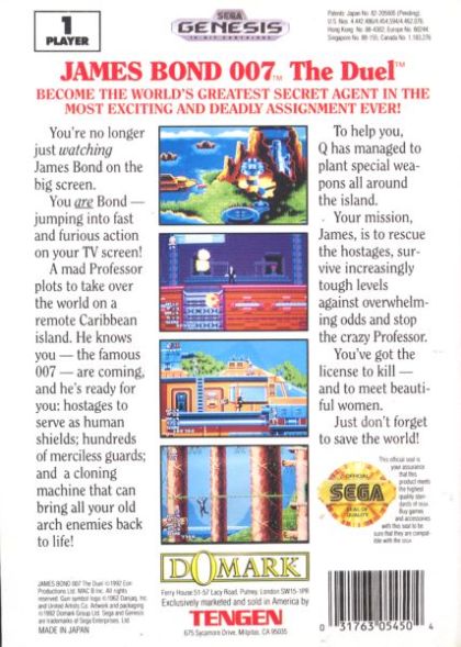 Play James Bond 007 and stop a crazy professor who has the same old dream as everyone else. World domination. The player will have the trusty Walther PPK and must go through a few levels with a villain at the end of every level. Such as in the first level, at the end the player will get to fight Jaws. To put it simply this game is basically a side-scrolling shoot-em-up. The player may find women who will give the player an extra life and many other things.