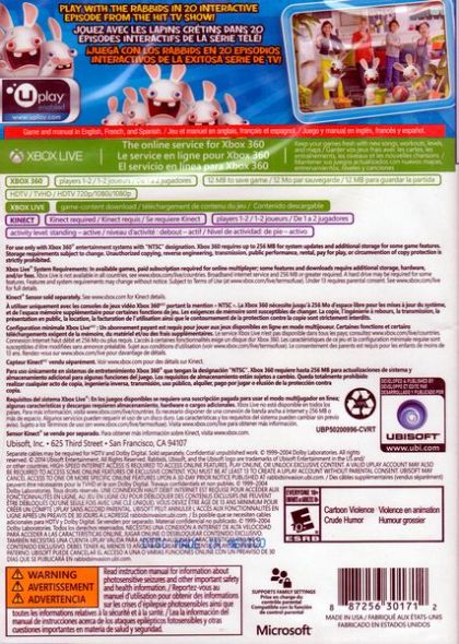 Rabbids Invasion, the kids' hit animated TV show, is now interactive on Kinect for Xbox One and Xbox 360. With motion gameplay, kids can now play in their living room with a selection of episodes from the TV show, and compete in multiplayer mode with fun, silly challenges to have an outrageous time with the family and friends and experience the Rabbids InvasionTV show in a brand new way.