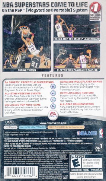For the first time, feel the emotion and intensity of the complete basketball experience on the go with NBA LIVE 06 for the PSP handheld. Loaded with unique passes, dunks, and signature moves, NBA Superstars storm the court in a variety of game modes including Exhibition, Season, Playoffs, and All-Star Weekend. Go wireless with Exhibition and Head-to-Head mode and challenge all comers across the nationor across the room. With in-depth gameplay modes, unprecedented player graphics, and wireless multiplayer technology, the sport of basketball is elevated to a whole new level.
