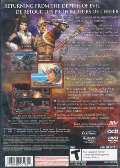 Shattering time and space, the venomous Serpent King Orochi kidnapped the DYNASTY WARRIORS and SAMURAI WARRIORS in scheme to test his might. The heroes eventually defeated Orochi and his menacing army. While the slain Orochi lies in the netherworld, a mysterious alliance is hatching an otherworldly plan so that the Serpent King may rise again. Now a new group of warriors must join forces with history's finest in an effort to stop this evil resurrection.
