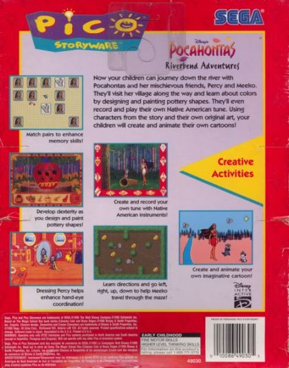 Now children can journey down the river with Pocahontas and her mischievious friends Percy and Meeko. They will visit her village along the way and learn about colors by designing and painting pottery shapes. They'll even record and play their own Native American tune. Using characters from the story and their own original art, your children will create and animate their own cartoons.