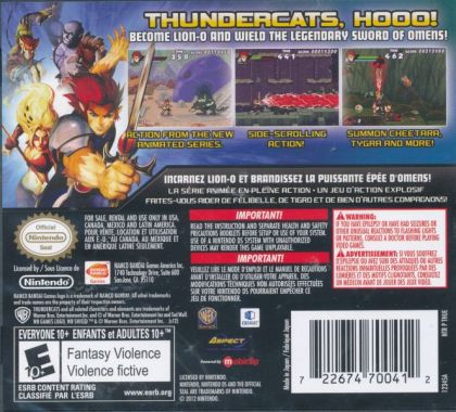 The hit animated high-action series claws its way onto the Nintendo DS! After generations of prosperity and peace, Thundera has fallen into despair. The once proud nation was led into ruin by the Lizard army and its leader, the evil sorcerer Mumm-Ra. Become Lion-O and battle Mumm-Ra and his evil forces as you run, jump, and slash your way through action ripped straight from the new animated series. Wield the incredible power of the Sword of Omens and call upon your faithful companions in this epic side-scrolling adventure.