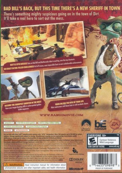 Rango is an action/adventure game set in a gritty, pint-sized, Wild West world filled with off-color characters, wild rides and frantic shoot-outs. Players of all ages will meet the residents of the town of Dirt and play through Rango's whacky Tall Tales of Adventure, brimming with intense action and outlandish scenarios.