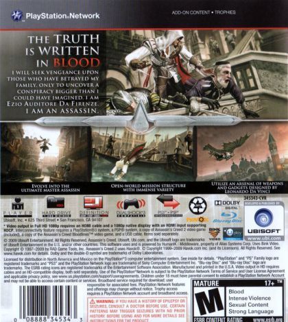 Assassin's Creed 2 retains the core gameplay experience that made the first opus a resounding success and features new experiences that will surprise and challenge players. Assassin's Creed 2 is an epic story of family, vengeance and conspiracy set in the pristine, yet brutal, backdrop of a Renaissance Italy. Ezio befriends Leonardo da Vinci, takes on Florence's most powerful families and ventures throughout the canals of Venice where he learns to become a master assassin.