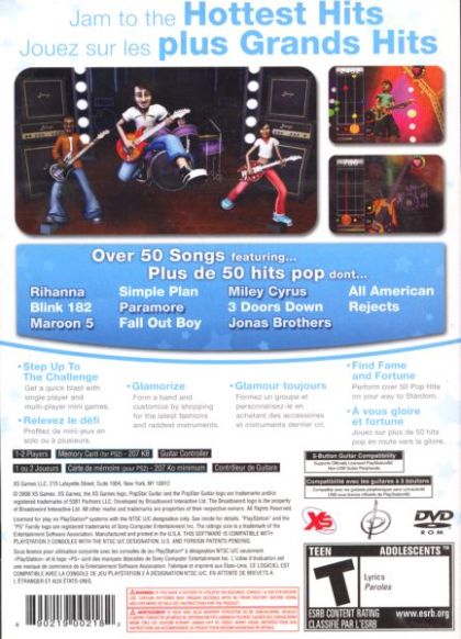 PopStar is set up like many music games: you start out playing your high school gym and progress through bigger and bigger venues. There are just two songs available at each spot, with none of the fun stuff you'll find in Rock Band like mystery set lists or local showcases. The track list is also terrible, made up of the cheesiest teeny bopper dregs around like All-American Rejects, Fall Out Boy, and Maroon 5. Even if you can stand this stuff, only about half are master tracks and the rest are covers -- which is no longer acceptable in music games. If you don't care enough about your game to get the master tracks, don't make the game.