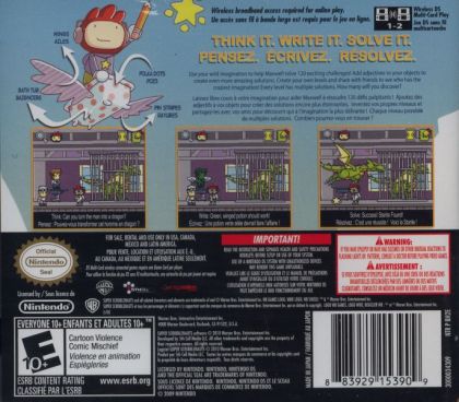 In this new game created and developed by 5TH Cell, players use the stylus and touch screen to help Maxwell, the game's hero, acquire the "Starite," the prize earned from solving the puzzle in even more robust challenges and redesigned levels. Players now have the ability to write any object that comes to mind and modify it in any way they desire using adjectives to reach the goal in each level. Adjectives can change the colour, size, elements, behaviours and many other aspects of the object they are describing. Multiple adjectives can be combined together to produce incredibly creative objects, allowing the player's imagination to run wild for a truly unique and individualistic experience.