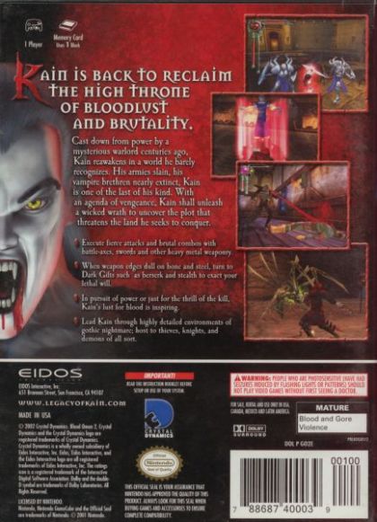 Cast down from power by a mysterious warlord centuries ago, Kain reawakens in a world he barely recognises. His armies slain, his vampire brethren nearly extinct, Kain is one of the last of his kind. With an agenda of vengeance, Kain shall unleash a wicked wrath to uncover the plot that threatens the land he seeks to conquer.