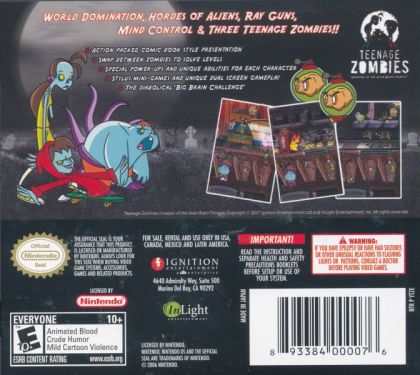 Thingys! Humans, succumbing to ray-guns, mind-control, and shiny flying saucers, have failed to defend their planet and let it fall easily into the clutches of the Big Brain and his army of Brain Thingys. The only hope left for mankind is three Teenage Zombies that have arisen from a graveyard disturbed in the invasion. The undead trio ignores their normal human victims in favour of the pulsing pink brains they see EVERYWHERE - all the while being lured to the ultimate lunch: THE BIG BRAIN! The Big Brain soon realizes he's overlooked this "Super Race" as they inexplicably resist mind control, are unaffected by ray-gun wounds, and devour his Brain Thingy Armies like sweets! He refocuses his efforts and resources to battle the Earth's greatest champions: The Teenage Zombies!