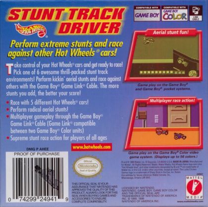 A side-scrolling stunt racer where the player is rewarded with speed bonuses for each stunt. Tracks are based on the toy tracks every child is familiar with. The game is somewhat similar to Excitebike in that the player must make jumps and land them correctly in order to complete each track. The player has the ability to roll and spin while in the air and is rewarded with a speed bonus for each successful stunt. The bigger the stunt, the faster you go. The game features 6 licensed Hot Wheels cars and 6 tracks. There is also a two player link mode.