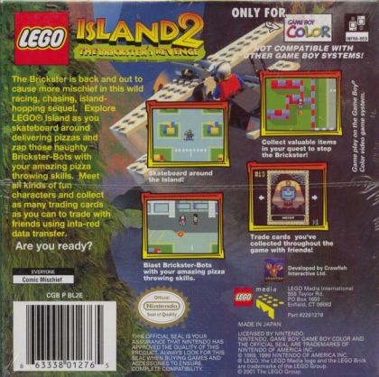 Lego Island 2: Brickster's Revenge is the sequel to the successful PC game Lego Island. The game begins as an RPG in which you travel around Lego Island, delivering pizza and talking to your fellow citizens. Until you hear about Brickster's escape from prison, and his attempt to deconstruct all the buildings on Lego Island.
