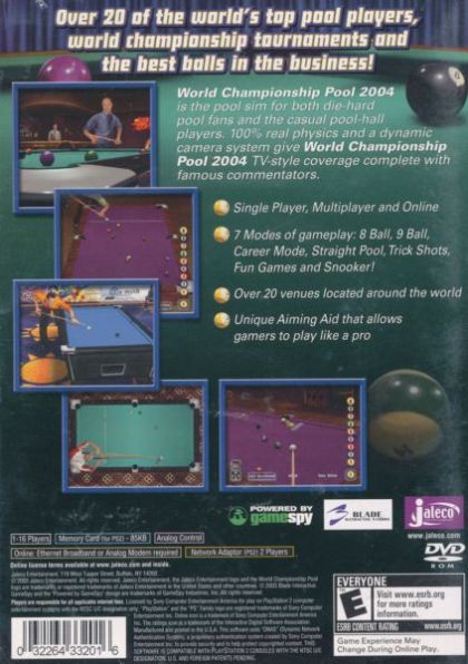 Both die-hard pool fans and the casual pool players can practice with World Championship Pool 2004, a pool simulator that features single-player, multiplayer, and online play. In both real and fictitious venues, you'll play to unlock fun tables, unique ball sets, and world-class pool cues. Become a professional in six gameplay modes; including 8-Ball, 9-Ball, Career, Snooker, Trick Shots; and bonus games like Countdown, Target Table, and Minefield. Realistic ball physics and a dynamic camera system give World Championship Pool 2004 TV-style coverage complete with famous commentators.