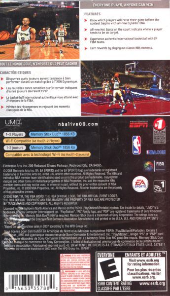 NBA Live 09 is the 2008 installment in the NBA Live series, developed and published by Electronic Arts. The original release date was October 7, 2008. The game features Tony Parker of the San Antonio Spurs on the cover in most markets (this is Parker's second appearance on the cover, Parker also appeared on the French version of NBA Live 07. The Wii version of the game, developed by HB Studios, is titled NBA Live 09 All-Play and launched under EA Sports' new All-Play brand exclusive to the platform. This was the last NBA Live game released for the PlayStation 2 and the Nintendo Wii.
