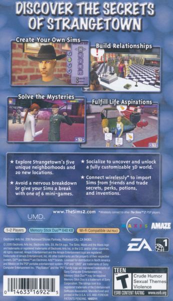 The Sims 2 comes to the PSP handheld entertainment system, Nintendo DS, and Game Boy Advance bringing with it all the addictive, open-ended gameplay of the fastest-selling PC game of all time. Featuring a unique storyline for each platform, The Sims 2 lets you create, customize, and control different neighborhoods as you delve into the mysteries of Stangetown and strive to uncover its secrets. Mind your Sim's Sanity Meter to save them from a nervous breakdown and connect with other players to trade secrets and play head-to-head mini-games. With The Sims 2 for handheld, now you can take it with you everywhere.