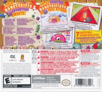 Moshi Monsters: Moshlings Theme Park, developed by Black Lantern Studios, invites players to restore the legendary Moshi theme park to its former glory. Players progressively unlock six zones by successfully building attractions and rescuing the scattered Moshlings (adorable, itty bitty pets for your pet monster). Users of the Nintendo 3DS can also interact with other Nintendo 3DS players via the StreetPass feature and play cool games to bring the Moshlings to life in a whole new dimension. Moshi Monsters: Moshlings Theme Park marks the first time fans can interact with beloved characters via 3D technology and introduces players to a brand new, exclusive Moshling that can transfer across platforms to the online world.