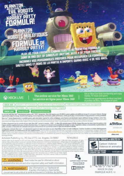 Blending exploration, combat, and puzzle-solving, SpongeBob SquarePants: Plankton's Robotic Revenge features references and humour from the hit Nickelodeon TV animated series. Gamers of all ages and skill levels can get together with co-op party mode, creating an experience that's fun for one, but better with others. Fans can choose between their favourite characters like SpongeBob, Patrick, Squidward, Sandy or Mr. Krabs as they scour the town hunting for hidden collectibles.