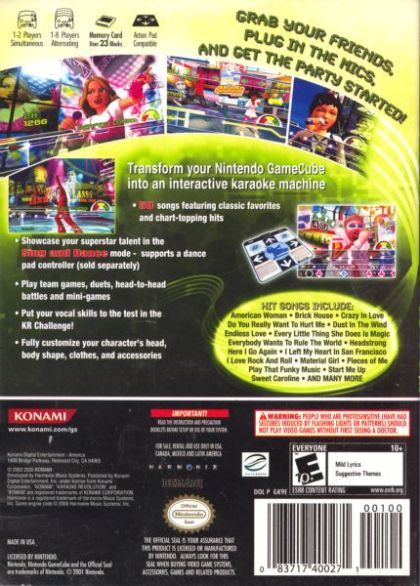 Karaoke Revolution Party goes multi-platform and adds even more life to the party, expanding on what has already made the series a popular hit at social gatherings. With more songs than ever before featuring classics like "Sweet Caroline" and "Do You Really Want To Hurt Me" and recent hits like "Crazy In Love" and "I Don't Wanna Be", and the all new Sing AND Dance mode, this is the ultimate interactive karaoke experience.