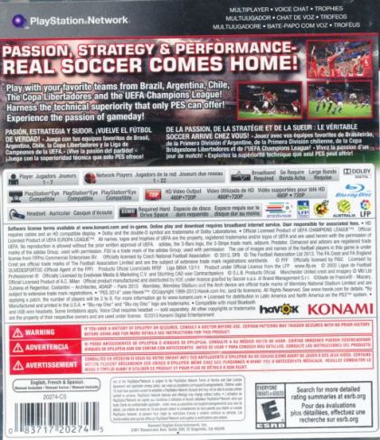 Pro Evolution Soccer 2014 marks a new beginning for Konami's blockbuster soccer series, with an all-new engine allowing for every aspect of Pro Evolution Soccer 2014 to be totally reworked to produce a game much closer to the excitement and variety of a top-level match.