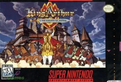 King Arthur & the Knights of Justice is a top-down action game. It might be mistaken for an RPG, however the abilities of characters do not change over the course of the game. Players control Arthur King and can recruit two additional party members from the knights. Each knight has his own statistics in various areas including: Life Force, Defense, Strength and Speed. These party members are computer controlled with their own energy bars. Arthur can move up, down, left and right, block with his shield and parry with his shield. Arthur can swing his sword at any time but the damage inflicted depends on how much strength bar he has. The strength bar replenishes itself naturally over time, but is depleted every time Arthur swings his sword. Each knight including Arthur has a health bar, when this bar runs out, the knight is defeated. It can be restored by returning to Camelot or using items such as healing herbs. Arthur can carry a variety of different items accessible from the menu. Other menu functions include looking at the map, changing preferences and reviewing the statistics of the knights.