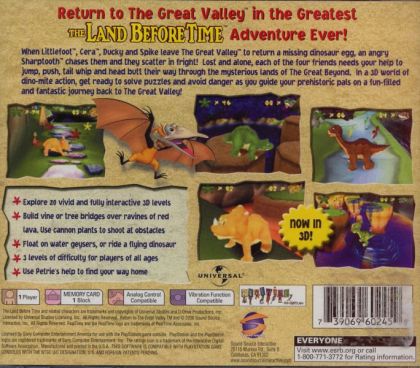 When Littlefoot, Cera, Ducky, and Spike leave The Great Valley to return a missing dinosayr egg, and angry Sharptooth chases them and they scatter in fright! Lost and alone, each of the four friends need your help to jump, push, tail whip and head butt their way through the mysterious lands of The Great Beyond. In a 3D world of dino-mite action, get ready to solve puzzles and avoid danger as you guide your prehistoric pals on a fun-filled and fantastic journey back to The Great Valley!