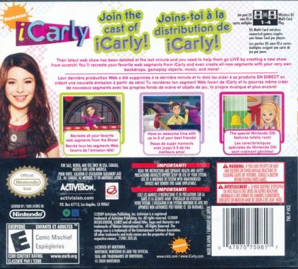 In the iCarly videogame, the possibilities are truly endless as players help Carly, Sam, Freddie and the other characters from the hit TV series craft all-new webisodes of the show in an original storyline designed specifically for the game. Fun and frenetic mini-games, presented as show skits, capture the creativity of the series, and allow players to work with the characters through new adventures. The innovative iCreate mode provides opportunities for gamers to add their own touches to the webisodes by swapping out props, characters, color schemes, audio, intros, outros and more. Up to four players can either compete or cooperate together on Wii to complete the skits and earn Web-Cred, which can then be used to purchase new items, props, accessories and locations from in-game websites.