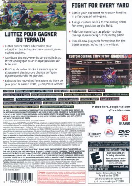On-field authenticity and emotion is taken to another level in Madden NFL 10. With more control over the outcome of the play than ever before, players can drag defenders towards the first down marker, fight for a fumble at the bottom of the pile, and avoid the rush by stepping up into the pocket. Utilizing an all-new animation technology, Madden NFL 10 ensures that the Fight For Every Yard doesn't end until the whistle blows.