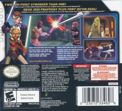Star Wars The Clone Wars: Jedi Alliance takes the player into the world of the all-new Star Wars animated feature film and TV series. Experience the combined power when two Jedi join forces to fight as one. Choose your favorite Jedi pair at the start of each mission and experience unique moves and combat skills. With an innovative stylus-based input, controlling the Jedi's movement and Lightsaber combat has never felt more immersive.
