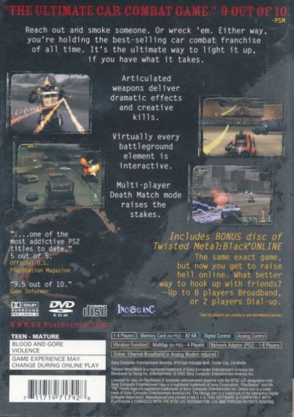 Twisted Metal: Black Online does not include a storyline. The game is car combat in it's purest form. However the gameplay does not differ from the original Twisted Metal: Black version. The story was about a mysterious man named Calypso that breaks out a group of deranged and cursed individuals from an insane asylum so they can compete in his car combat tournament. All of the characters have a ghastly history as to why they're in the asylum and many of their horrific lives intertwine in some fashion or another. Basically, all the characters have gone through hell and have scores to settle.