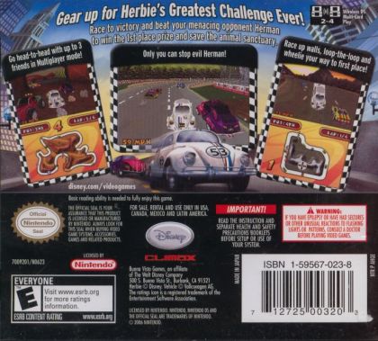 The next videogame release in the popular Herbie franchise, DISNEY'S HERBIE: RESCUE RALLY DS provides extreme race courses filled with ramps, jumps, hills and tunnels for the player to speed through. The game's twisting and turning arcade-style racing is put into overdrive with exciting elements such as short-cuts, pick-ups and wacky Herbie special moves. Herbie's accelerating endeavours take place both on the track and off-road demanding players draw on all their driving skills to become a champion. Herbie comes to the rescue of teenager Louise Noble, whose family's beloved animal sanctuary is in danger of being taken and turned into a toxic chemical factory by the dastardly Edward Vile and his E. Vile Corporation. Louise's only hope is to win the Cross States Rally and use the $1 million prize money to save the sanctuary. Louise uses what little savings she has and purchases a dusty VW Bug left forgotten in the corner of a car dealer. Luckily, that Bug is Herbie!