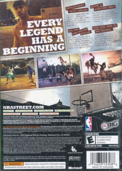 NBA STREET returns with a brand new game engine only possible with the power of next generation console systems, allowing the franchise to once again raise the bar with innovative gameplay and cutting edge visuals. With a new animation engine and control system, we put the ball in your hand and allow you to show off your own style by creating hundreds of tricks on the fly. Soar through the air to execute gravity-defying dunks and double dunks or step off the back of your teammate for a jump-off dunk.
