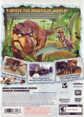 As the unlikely herd travels across the tundra and beyond, they stumble upon another world - a lush Dinosaur World teeming with jungles, mysterious plants, fierce dinosaurs, wild new adventures and several new friends. Taking on the role of more than six playable characters, including everyone's favorite Ice Age friends and newly introduced characters, players master their unique skills and abilities across more than 15 action-packed levels. In addition to the expanded features of the single-player gameplay, for the first time in an Ice Age game, players can team up with friends and family in eight competitive multiplayer mini-games.