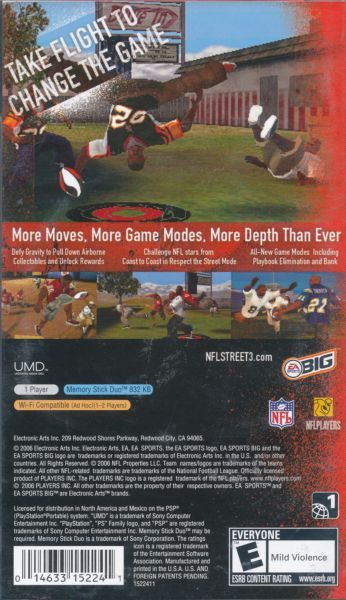 With the exclusive video game license of the NFL and PLAYERS INC., NFL STREET 3 brings back the gravity-defying moves and ankle breaking jukes, but now this year NFL STREET 3 allows the player to collect items above the field that can change the game and garner respect. With the third iteration in this franchise, you have the ability to control your Game Breaker and execute all new power moves. Remember it's all about Respecting the Street!