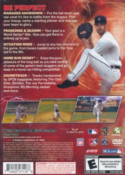 Be Perfect: The longest running Major League Baseball franchise returns to the virtual diamond with MLB 2K12 from 2K Sports. Featuring advanced pitching and hitting controls, detailed player tendencies and scouting reports, and immersive game modes for any level of fan, MLB 2K12 is the only game you'll need this season. Available March 6, 2012 on all major gaming consoles. MLB Today Season Mode - For the first time ever, play along with the real-life MLB season AS IT UNFOLDS. Take charge of your favorite team and see how you stack up against the rest of the league over the course of a six month-long season. Dynamic Tendency System - Just as in real-life, opposing pitchers and hitters will learn your ten-dencies from one at-bat to the next, challenging you to mix up your approach on both sides of the plate as each game unfolds. New Throw Meter - A revamped throwing system presents a classic risk vs. reward situation every time you make a play. Will you queue up throws before fielding the ball to save time, or take a moment to set your feet for better accuracy. Improved My Player Mode - Want to be the next All-Star slugger or ace starter? All-new player types let you decide your path to the Majors. Goals, expectations, ratings and progression are all customized by position and player type. Soundtrack - Tracks handpicked by SPIN magazine, featuring Cool Kids, Skrillex, The Joy Formidable, Group love, My Morning Jacket and more.