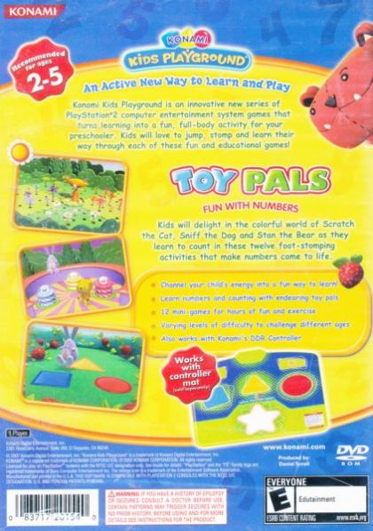 Toy Pals brings the kinetic excitement of Konami Kids Playground to the playroom! Join Scratch the Cat, Sniff the Dog, Stan the Bear and lots of bunnies in twelve foot-stomping activities that make numbers come to life. Kids will delight in the colorful world of toys, and parents will appreciate the simple challenges that reinforce familiarity with numbers.