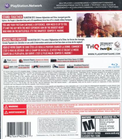 You and your fireteam take a small step into the future, Operation Flashpoint: Red River depicts a fictional conflict with contemporary geopolitical themes, which will unfold over three distinct acts in both single player and drop-in/drop-out co-operative play for up to four players online.
