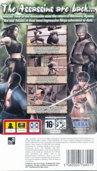 The complex 3D environments the series is known for have been carried over on the PSP in their entirety. Enhanced stealth manoeuvres challenge your ninja skills, and all-new kill moves add yet more realism and entertainment to this ninja-based action adventure. Now, every enemy is susceptible to carefully planned stealth kills ... even the end level bosses!