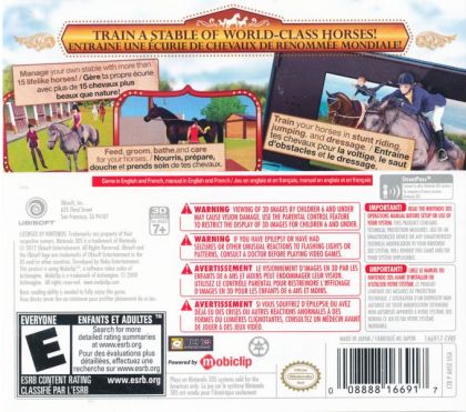 The first authentic horse game for the Nintendo 3DS system, Horses 3D invites players to care for more than 15 realistic horses, ride them and train them for world-class performance. Horses 3D fully leverages the Nintendo 3DS features with the most realistic visuals for a horse game yet, including 3D horses, textures and beautiful environments, as well as StreetPass sharing and more.