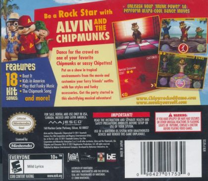 Dance and sing along with Alvin and the Chipmunks in this motion-based experience that lets you perform for the crowd as one of your favorite Chipmunks or sassy Chipettes. Dance to classic Chipmunk hits as you play in environments right from the big screen. Unleash your 'Munk Power' to perform ultra-cool dance moves while following an exciting story based on the movie. Get the party started in the exciting musical adventure that is Alvin and the Chipmunks: Chipwrecked!