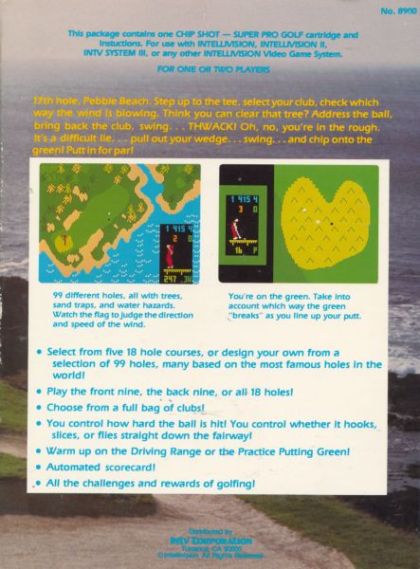 Select an easy or a hard course, or put together your own from a selection of 99 holes, many based on the most famous holes in the world! Choose from a full bag of clubs! The wind can affect your shot; watch the flag to see which way it's blowing! You determine how hard the ball is hit, you determine if the ball hooks or slices! Watch out for trees, sand traps and water hazards. Close-up view of each green for putting. All the challenges and rewards of golfing.
