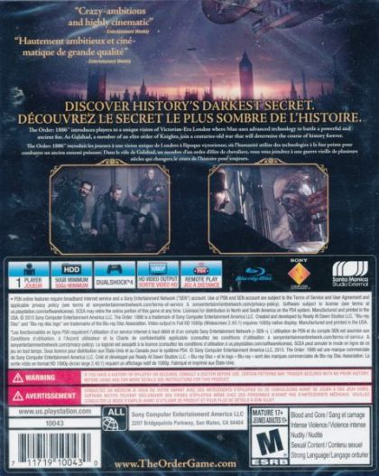 The Order: 1886 re-writes history by introducing a unique vision of Victorian-Era London where myths and technology co-exist. As a member of an elite order of knights, join a centuries-old war that will determine the course of history forever.