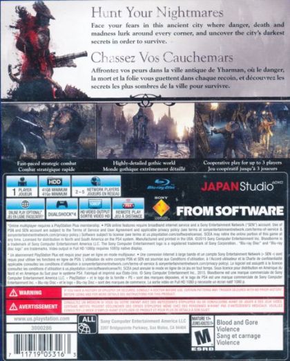 Introducing Bloodborne, the latest Action RPG from renowned Japanese developer FromSoftware, exclusively for the PlayStation®4 system. Face your fears as you search for answers in the ancient city of Yharnam, now cursed with a strange endemic illness spreading through the streets like wildfire. Danger, death and madness lurk around every corner of this dark and horrific world, and you must discover its darkest secrets in order to survive.