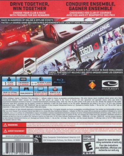 Get ready for a racing game like never before. Developed exclusively for the PlayStation®4 (PS4) system by Evolution Studios, the team behind the best-selling MotorStorm® franchise, DRIVECLUB is all about you and your friends. It's about teamwork; it's about everyone fighting for one another and earning rewards together - and most importantly it's about sharing in the sheer thrill of every race. Enjoy the excitement of high-speed solo racing, or join a racing club to discover what DRIVECLUB is all about. Created specifically with the next-generation gamer in mind, DRIVECLUB leverages the networking power and social capabilities of the PS4 to seamlessly and immediately connect you and your friends, always allowing you to share your experiences, send and receive challenges, and keep up to speed with your team's performance.