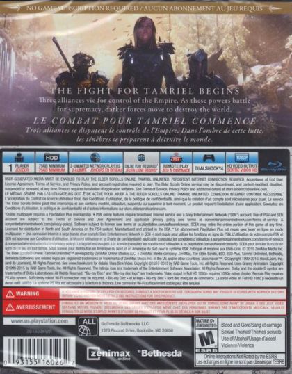 After 20 years of best-selling, award-winning fantasy role-playing games, the Elder Scrolls series goes online. Experience this multiplayer roleplaying game on your own or together with your friends, guild mates, and thousands of alliance members. Explore dangerous caves and dungeons in Skyrim, or craft quality goods to sell in the city of Daggerfall. Embark upon adventurous quests across Tamriel and engage in massive player versus player battles, or spend your days at the nearest fishing hole or reading one of many books of lore. Use any weapon or armor at any time and customize your abilities to play the way you want. The choices are yours and the decisions you make will shape your destiny and the persistent world of The Elder Scrolls Online: Tamriel Unlimited.