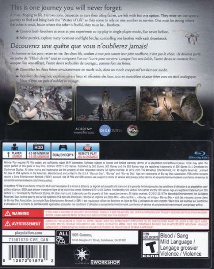 Guide two brothers on an epic fairy tale journey from a visionary Swedish film director in this new generation console edition, complete with Soundtrack & Artwork galleries and Director's playthrough with Commentary.