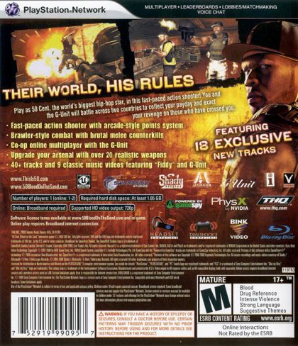 After performing for a sold-out crowd in a fictional war torn middle-eastern country, 50 Cent discovers that his payment has been stolen by the local crime baron – a former CIA operative and death-dealing organ harvester. Play as 50 Cent, the world's biggest hip-hop star, as you and the G-Unit battle across two countries in order to collect your payday and unleash hip-hop justice on those who have crossed you.