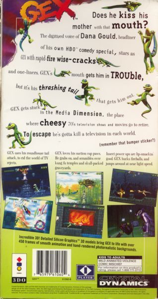 Enter your television to defeat the evil Rez by collecting remotes to open worlds inside your tv. You are a gecko with all the usual platform hero skills such as jump, fire and close range attack, but also suction cups to help you scale walls, a tongue to pick up those tricky to get power-ups and plenty of wise-cracks to keep you amused. Use them all to make your way through TV land searching for the remotes, collecting pickups, power-ups and killing TVs.