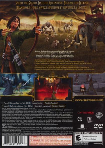 Players assume the role of Aragorn and embark on a single player quest reliving his greatest battles from The Lord of the Rings trilogy. This action combat game allows fans to defend Middle-earth as they wield sword, bow and shield against Sauron's evil forces. As players progress through the game, they can upgrade Aragorn's weapons, armor and combat skills to fit their individual fighting style.