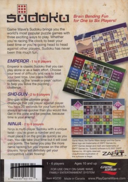 Game Wave’s Sudoku brings you the world’s most popular puzzle games with three exciting ways to play. Whether you’re racing the clock to beat your best time or you’re going head to head against other players, Sudoku has never been this much fun.